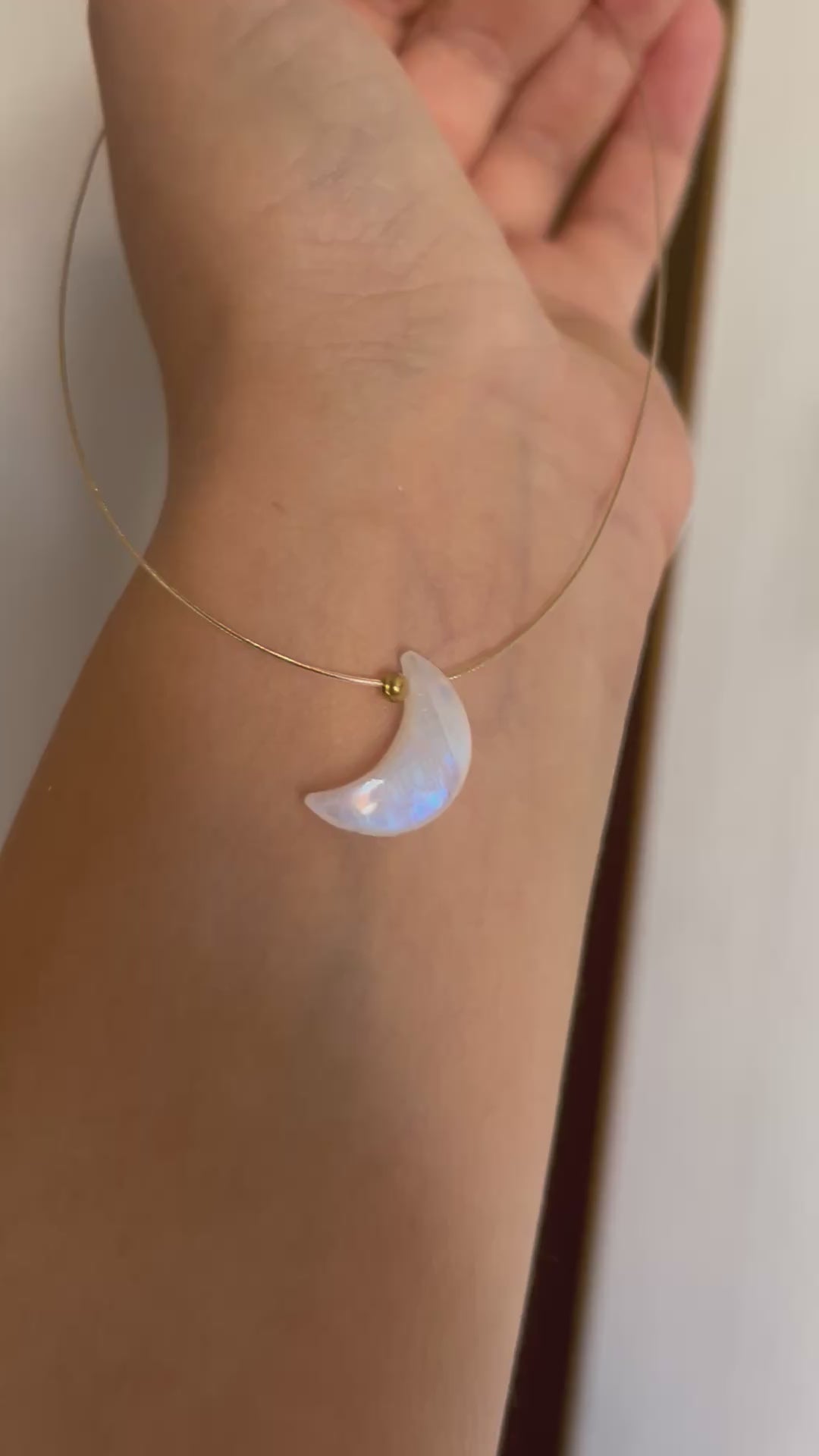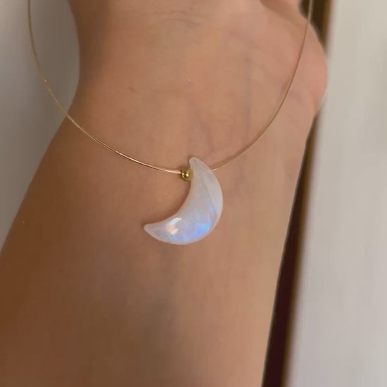 Ogrlicu ručno izrađujemo od nerđajućeg čelika i posebne vrste Mesečevog kamena, poznatog i kao “Rainbow Moonstone”, karakterističnog po prelamanju svetlosti u bojama duge. 🌈